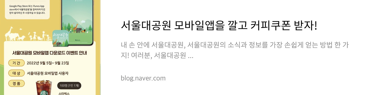 ▼ 서울 대공원 모바일앱 깔고 커피쿠폰 받자! ▼