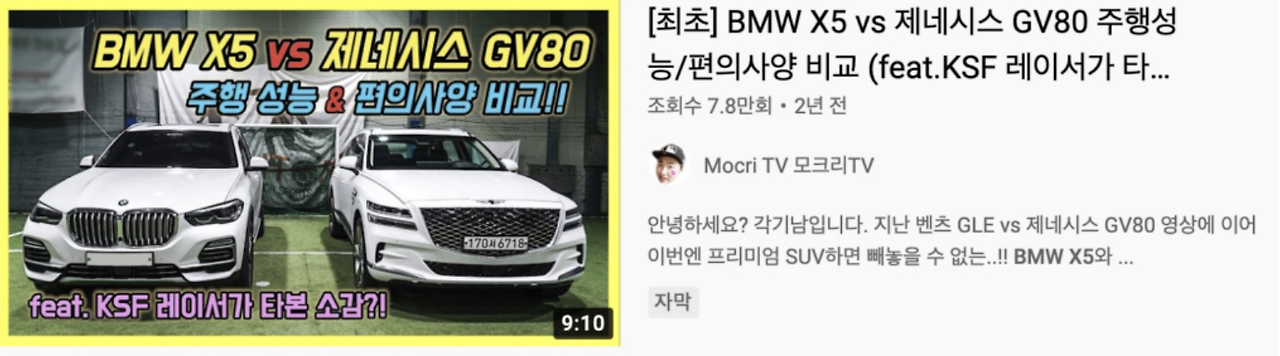 [최초] BMW X5 vs 제네시스 GV80 주행성능/편의사양 비교 (feat.KSF 레이서가 타본 소감!?) – 모크리TV