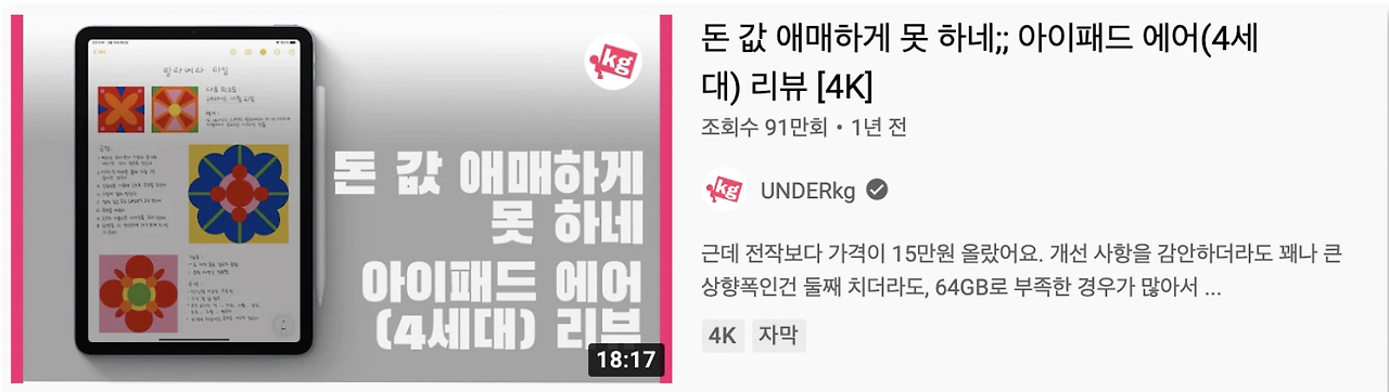 돈 값 애매하게 못 하네;; 아이패드 에어(4세대) 리뷰 [4K] – UNDERkg