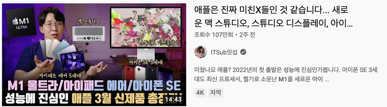 ITSub잇섭 : 애플은 진짜 미친X들인 것 같습니다… 새로운 맥 스튜디오, 스튜디오 디스플레이, 아이패드 에어 5세대, 아이폰 SE 3세대 총정리!