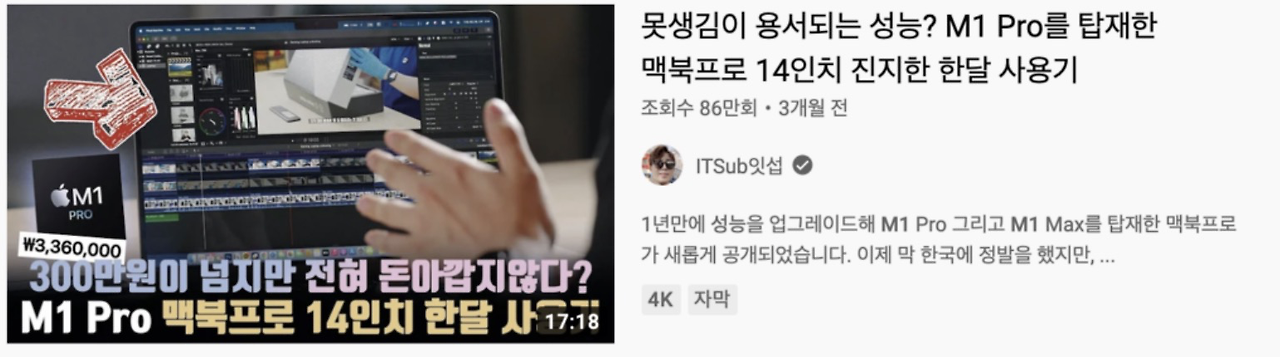 ITSub잇섭 : 못생김이 용서되는 성능? M1 Pro를 탑재한 맥북프로 14인치 진지한 한달 사용기